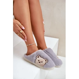 Kapcie Damskie Futrzane Z Misiem Szare Fiorinella