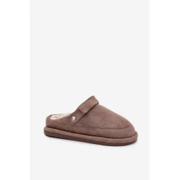 Kapcie Damskie Z Paskiem Ocieplane Futerkiem Ciemnobeżowe Rilena