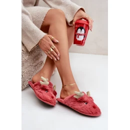 Kapcie Świąteczne Z Motywem Renifera Futrzane Koralowe Asielle