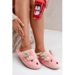 Kapcie Świąteczne Z Motywem Renifera Futrzane Różowe Asielle