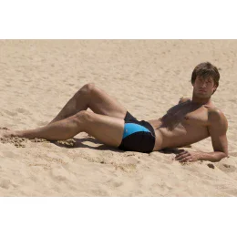 Módne, športové pánske plavky so zaujímavým lampasom na stehne. Modrá farba s čiernou, zaujímavo, atraktívne zdobí telo. V páse je elastický pás a šnúrka, pomocou ktorej si môžete ďalej upraviť obvod podľa svojich potrieb. Taliansky, elastický, kvalitný úplet podpísaný logom jedného z najlepších poľských výrobcov Marko Collection.
