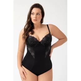 Toto čierne modelujúce body je kombináciou zmyselnosti, pohodlia a dokonalého strihu. Košíčky s kosticami sú zdobené jemnou čipkou v decentnom odtieni, ktorá celku dodáva elegantný a ženský charakter. Konštrukcia poskytuje stabilnú podporu poprsiu a krásny, zaoblený tvar.