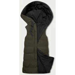 Khaki-čierna obojstranná vesta s kapucňou (V724)