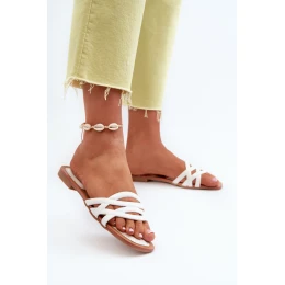 Klapki Damskie Eko Skórzane Na Płaskim Obcasie Białe Moldela
