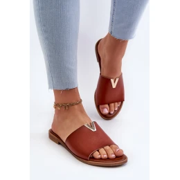 Klapki Damskie Eko Skórzane Na Płaskim Obcasie Brązowe Maliha