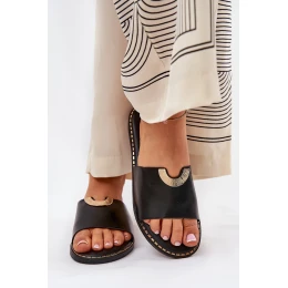 Klapki Damskie Eko Skórzane Z Ozdobnymi Detalami Czarne Mevith