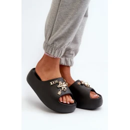 Klapki Damskie Lekkie Piankowe Z Ozdobami Czarne Orchia