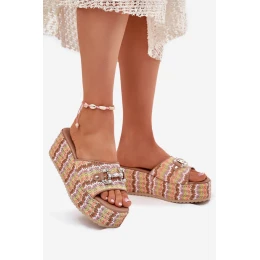 Klapki Damskie Na Koturnie Z Plecionką I Ozdobą Multikolor Isolene