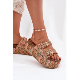 Klapki Damskie Na Masywnej Platformie Z Plecionką I Klamrami Multikolor Eradriana
