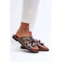 Klapki Damskie Na Płaskim Obcasie Miedziane Nelvira
