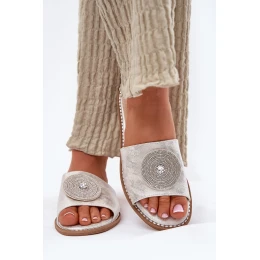 Klapki Damskie Na Płaskim Obcasie Z Ozdobą S.Barski KV51-013 Srebrne