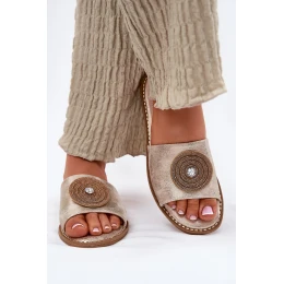 Klapki Damskie Na Płaskim Obcasie Z Ozdobą S.Barski KV51-013 Złote