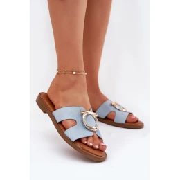 Klapki Damskie Na Płaskim Obcasie Z Ozdobą Vinceza 17381 Niebieskie