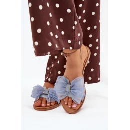Klapki Damskie Na Płaskim Obcasie Z Tiulową Kokardą Jeansowe Tanira