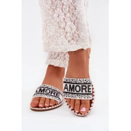 Klapki Damskie Na Płaskim Obcasie Ze Zdobieniem Amore Białe Avelina