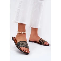 Klapki Damskie Na Płaskim Obcasie Ze Zdobieniem Czarne Dorfedi
