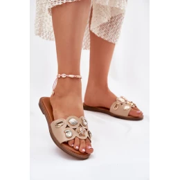 Klapki Damskie Na Płaskim Obcasie Ze Złotymi Przypinkami Beżowe Nalothiel
