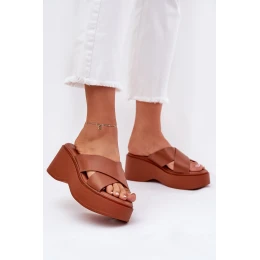 Klapki Damskie Na Platformie I Koturnie Camel Nelithraea