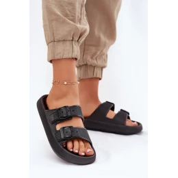 Klapki Damskie Na Platformie Z Klamrami Czarne Nitiana