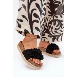 Klapki Damskie Na Platformie Z Ozdobnymi Kwiatkami Czarne Tessara