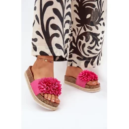 Klapki Damskie Na Platformie Z Ozdobnymi Kwiatkami Fuksja Tessara
