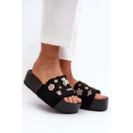 Klapki Damskie Na Platformie Z Przypinkami Czarne Zranesia