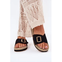 Klapki Damskie Na Platformie Ze Złotą Klamrą Czarne Selira
