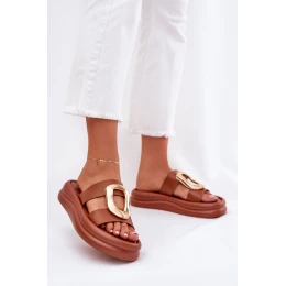 Klapki Damskie Na Platformie Ze Złotym Detalem Camel Ularinea