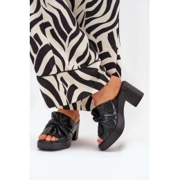 Klapki Damskie Na Słupku Z Eko Skóry Czarne Kikilla