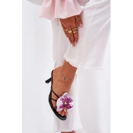Klapki Damskie Na Szpilce Ze Sztucznym Kwiatem Czarne Reyi