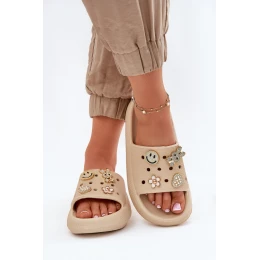 Klapki Damskie Piankowe Z Przypinkami Vinceza 76055 Beżowe
