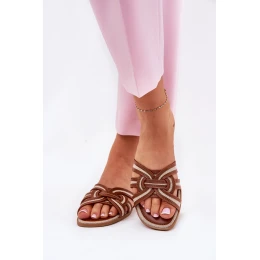 Klapki Damskie Płaskie Z Przeplatającymi Się Paskami Brązowe Acimine