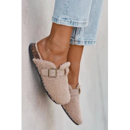 Klapki Damskie Z Futerkiem Typu Baranek Beżowe Lorivine