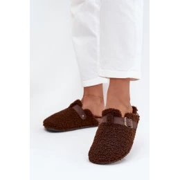 Klapki Damskie Z Futerkiem Typu Baranek Brązowe Lorivine