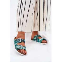 Klapki Damskie Z Klamrami I Brokatem S.Barski RB51-006 Zielone