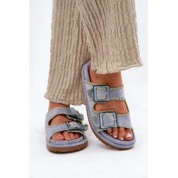 Klapki Damskie Z Klamrami I Ozdobnym Obszyciem Niebieskie Visley