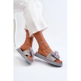 Klapki Damskie Z Ozdobą Na Niskiej Platformie Szare Cedrella
