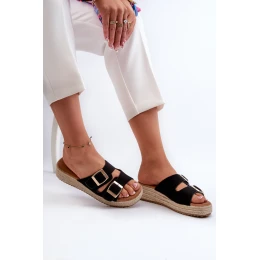 Klapki Damskie Z Plecionką Eko Zamszowe Czarne Zaloemi