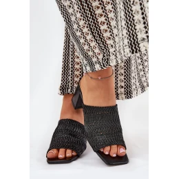 Klapki Damskie Z Plecionką Na Obcasie Czarne Ciariloria