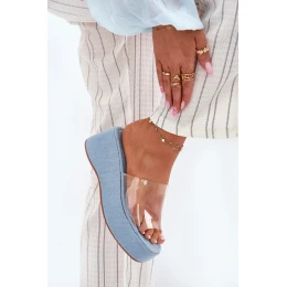 Klapki Damskie Z Transparentnym Paskiem Na Koturnie Jeansowe Meltiana