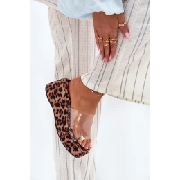 Klapki Damskie Z Transparentnym Paskiem Na Koturnie Panterka Meltiana