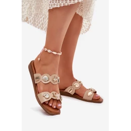 Klapki Damskie Ze Złotymi Przypinkami Beżowe Jenoriela