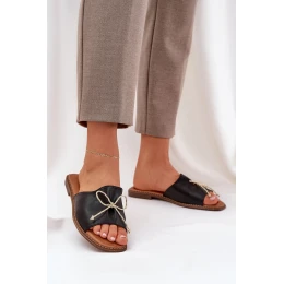 Klapki Na Płaskiej Podeszwie Z Ozdobną Kokardką Czarne Deonelis