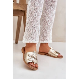 Klapki Z Ozdobą Skóra Naturalna Zazoo 3667 Złote