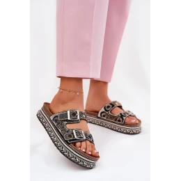 Klapki Ze Zdobieniem I Klamrami Na Platformie Czarne Mellene