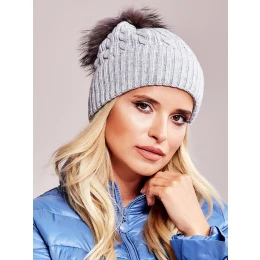 Čiapka s kockovaným vzorom a chlpatým brmbolcom šedá