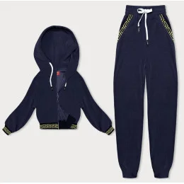 Tmavo modrý teplákový rebrovaný komplet s ozdobnými sťahovacími lemami (AMG-345A)