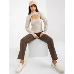 Svetlo béžový pletený set s krátkym svetrom a topom.