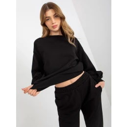 Čierna ležérna súprava s mikinou s otvoreným chrbtom.