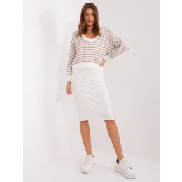 Béžová a ecru ležérna základná súprava s voľnou blúzkou.